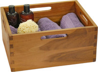 Need a place to put hand towels or extra soap for when guests visit? This large teak storage bin is the perfect solution! Now you can put out whatever guests might use in this chic, elegant box without adding eyesore to your decor theme.