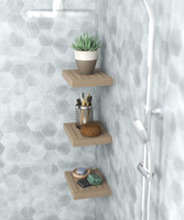 Shelf can be used for products such as towels, vases, pictures, soap and other amenities or accent items. Product Holds up to 10 LBS