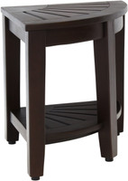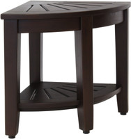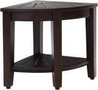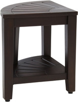 Product Dimensions: 15.5" x 15.5" x 18" Product Weight: 13.5 LBS Built using our OptiAREA space-saving design, this teak shower bench was specifically made to fit in the corner of your shower or bathroom. This beautiful little teak bath stool is the perfect accent piece. Made in an elegant spa style, it is designed to be both convenient and aesthetically appealing. Naturally water resistant, this style includes all stainless steel hardware and adjustable rubber-padded feet for safety, stability, and durability. The stool's proprietary rich, dark stain greatly enhances the teak wood's ability to repel water & dirt. Enhancing the wood grain and color, the finish also repels soaps and lotions and has a built-in mold and mildew inhibitor. This 15.5" teak shower bench also features a handy shelf for additional storage. Color may vary from photo. (Some assembly required)