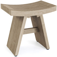 This modern teak bench has an Asian-influenced design that is made from solid teak wood and ideal in wet or humid spaces. Known for its natural water-resistance, this teak bench is great for the bathroom, as an outdoor accent, or poolside.