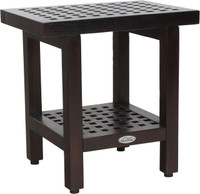 Product Dimensions: 18" x 12" x 18" Product Weight: 13.5 LBS AquaTeak?s shower bench, finished in deep rich mocha coloring, is a unique accent for any room of your home. This grate style teak shower seat is perfect for your shower or anywhere in your bathroom. The handcrafted solid teak shower stool will add a natural elegance to your home and is both durable and naturally water resistant. Ideal as a teak shower bench or an outdoor patio accent piece, the convenient design is highly versatile, and can be used almost anywhere. Your teak bath stool also comes with all stainless steel hardware and includes rubber padded feet for safety and stability in any location. Aqua Teak is the world's leader in teak furniture - carrying more than 100 teak shower benches, stools, accessories and storage options. (Some assembly required)