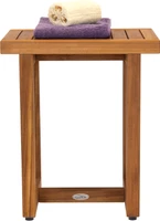 This elevated teak shower bench will give your bathroom a luxurious spa feel or can be used as a convenient teak bench on your patio. This versatile teak bath stool includes stainless steel hardware and adjustable rubber padded feet for safety and stability, and is sturdy enough to use as a lovely teak shower seat. Extremely durable and made to last, our teak shower seat is made entirely from high-quality, sustainably-harvested teak wood. We're so confident that you'll love this unique teak shower bench that we offer a 30 day satisfaction guarantee and 5 year warranty on it, as with all of our products!