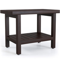 Hold all your shower essentials with the 24" Spa™ Mocha-Shield Teak Shower Bench! This wood shower bench with an elevated height and shelf is perfect for keeping right next to your bathtub.