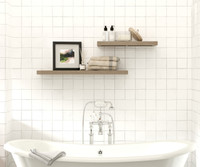 Shelf can be used for products such as towels, vases, pictures, soap and other amenities or accent items. Product Holds up to 10 LBS