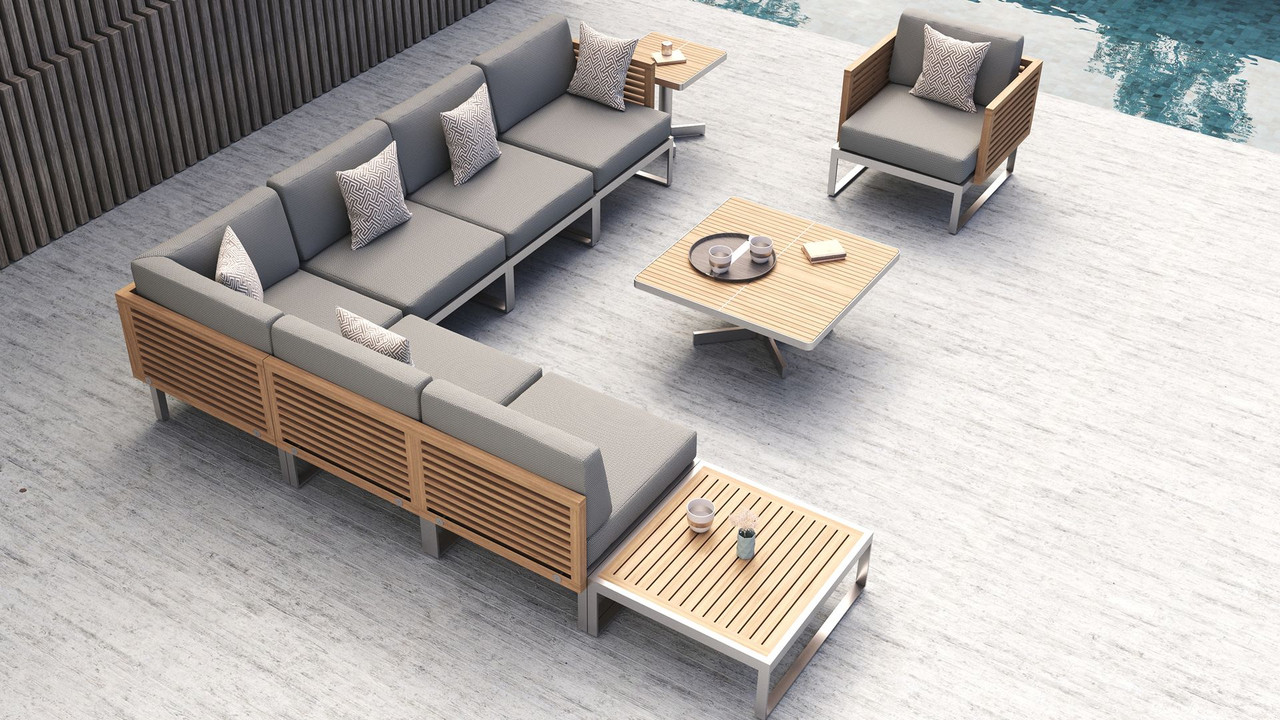 Quick view Compare Pre-Order Now Supreme Outdoor Teak & Stainless Steel Modular Left-Arm Single-Seat MSRP: Was: Now: $1,203.90 - $1,376.90