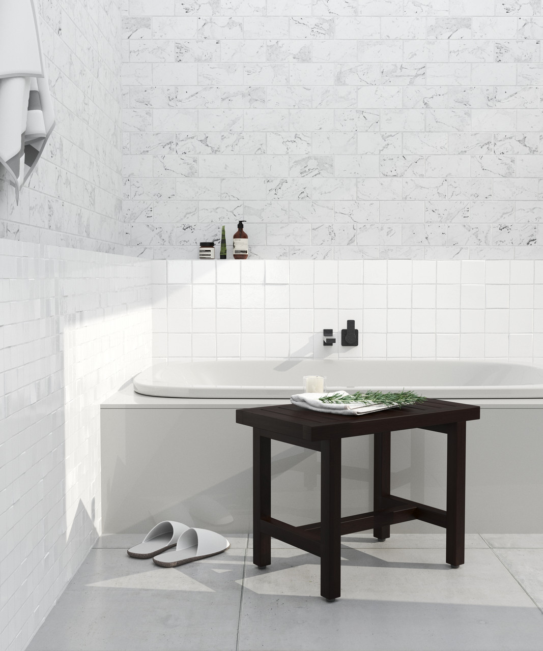 Sometimes, simplicity is the most luxurious touch of all. This teak shower bench will fit into a compact space and offer a place to sit or to set your things. Most of the furniture you’ll find in a shower will be plastic or metal, which makes this teak wood bench an incredible touch. Best of all, you don’t have to worry about water ruining the bench. Our teak shower benches are crafted out of authentic teak, which means they feature water-repelling qualities and gorgeous color. AquaTeak® proudly offers a 30-day satisfaction guarantee and a five year warranty. Invest today!