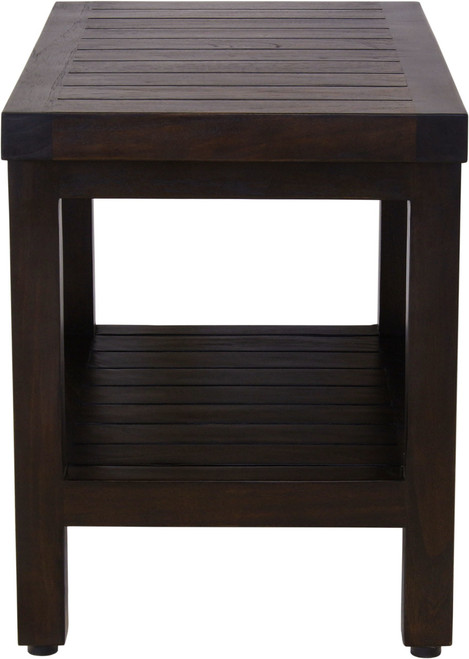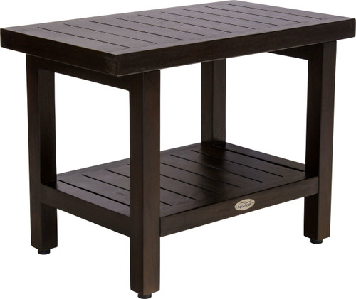 AquaTeak®’s shower bench, finished in deep rich mocha coloring, is a unique accent for any room of your home. This teak shower bench will blow you away with its high quality and aesthetic appeal. Handcrafted with farm-grown, sustainably-harvested teak wood, this AquaTeak® teak shower seat is the ideal accessory for your bathroom, patio, or poolside. Convenient for use as a teak bath stool as well, this durable product comes with all stainless steel hardware and is naturally water resistant. Perfect for any area of your home or garden, we are so confident that you will love your teak shower bench that we offer a no-hassle, 30-day guarantee and a 5-year warranty on this and all of our teak furniture products! (Some assembly required)