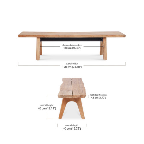 Aurora 74.8" Outdoor Teak Live Edge Buffet Dining Seating