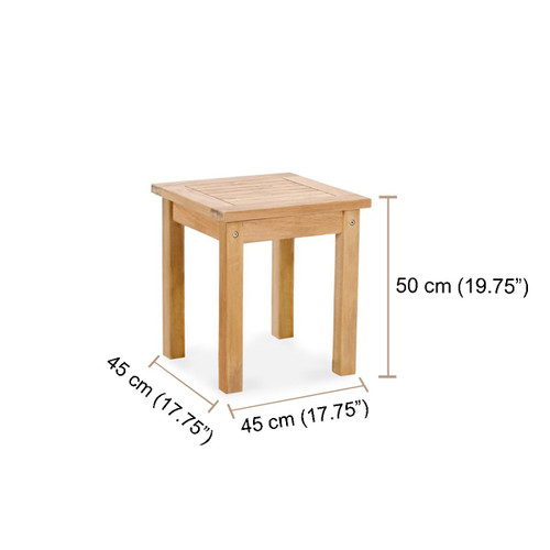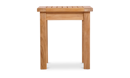 A simple outdoor side table built from solid teakwood. Ideal for when you're entertaining guests or simply relaxing on your patio. The premium grade wood will easily last a lifetime due to its durability and weatherproof qualities.