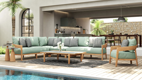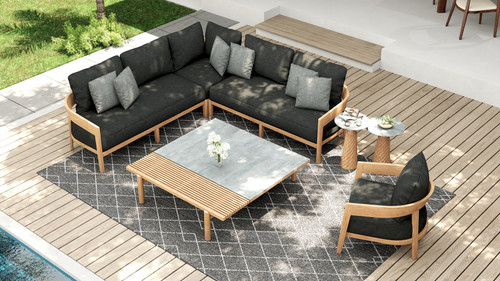 Introducing our Luxe collection, where gentle, flowing design meets exceptional comfort in solid teak material. Sink into the cozy embrace of our oversized cushions, thoughtfully designed to enhance your outdoor lounging experience.