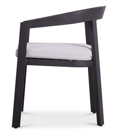 Crafted with a powder-coated aluminum frame, Luxe seating features removable outdoor fabric cushions that are easy to clean and built to withstand all weather conditions. The modern design, characterized by clean, straight edges, brings a minimalistic elegance to any patio space.