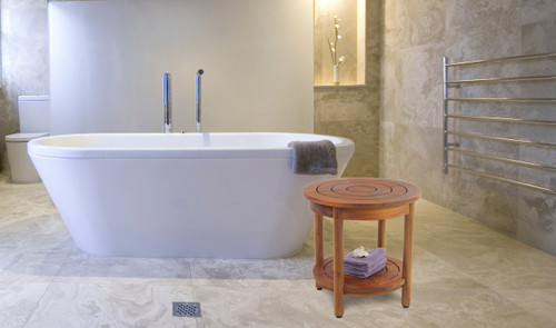 Strong and beautiful, this teak stool with a shelf is the perfect fit. Made from materials that stand up against weather, sun, and water, it is as sturdy as it is functional and classic. A simple yet elegant design with concentric circles, makes it a great addition to most décors. The added shelf gives you extra storage space for magazines, towels, and so much more. So whether you want an end table for your living room, patio seating, or a stool for your towels at the pool, this product can do the job. Versatile, simple, yet beautiful and made to last, it could be the perfect addition to any space.