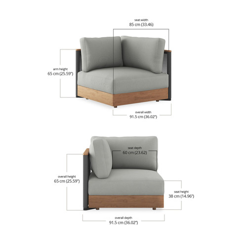 - Elegant and Durable: Features side panels with a powder-coated aluminum frame and solid teakwood armrests.