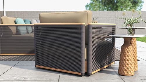 • Elegant Durability: Features side panels with a powder-coated aluminum frame and solid teakwood armrests.
