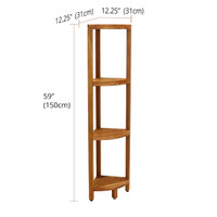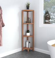 Featuring four sturdy tiers, this teak bath stand offers ample space for towels, toiletries, or decorative accents. The corner design makes it an ideal fit for compact spaces, allowing you to optimize your bathroom layout. The finely sanded surface showcases the natural beauty of the teak wood, adding to the overall visual appeal.