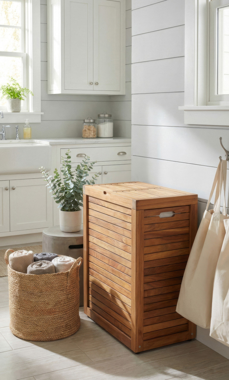 Quick view Compare Add to Cart The item has been added The Original Nila Teak Wall Hugging Louvered Large Hamper MSRP: Was: Now: $249.95