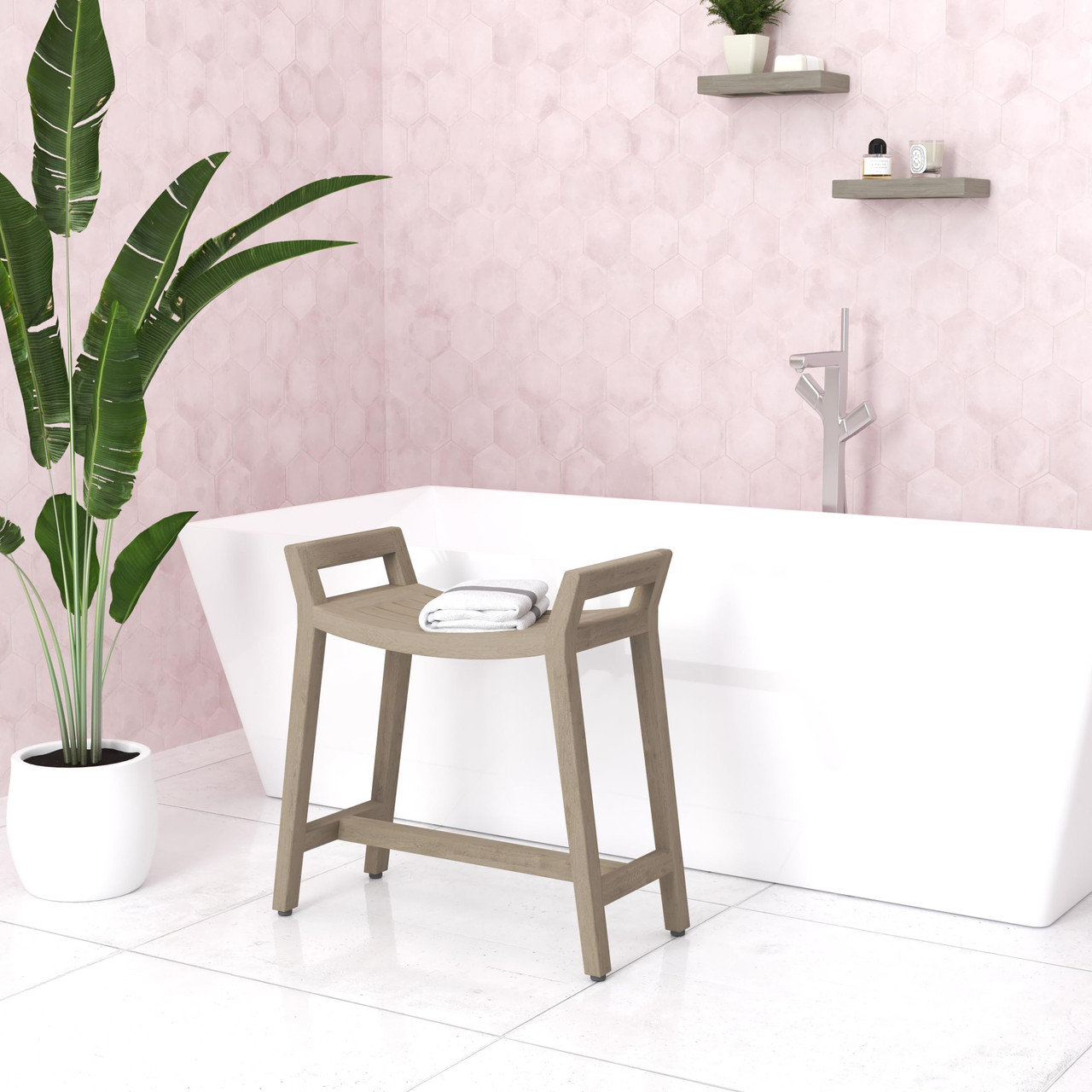 Stylish teak pieces for your bathroom and shower that add both elegance and convenience
