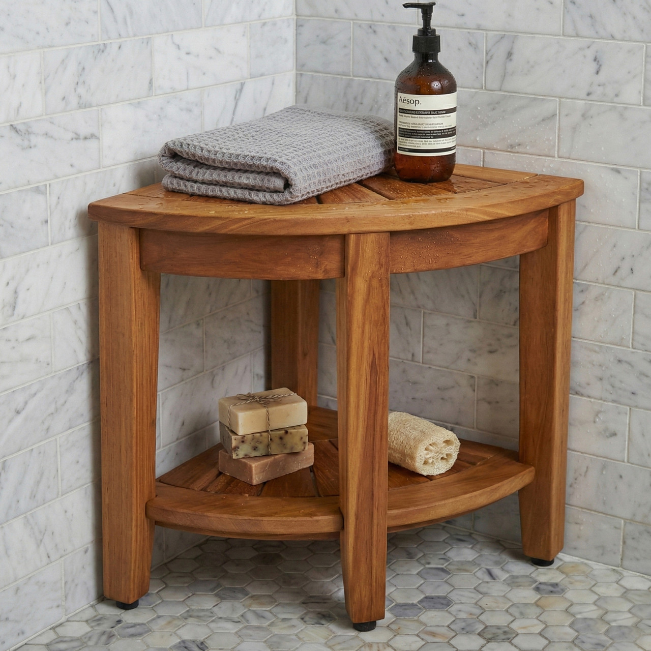 Quick view Compare Choose Options The Original 15.5" Kai™ Corner Teak Shower Bench with Shelf MSRP: Was: Now: $139.95
