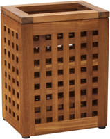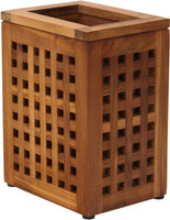 This waste bin is made from naturally-harvested teak wood, it is naturally weather-resistant and waterproof, able to be used indoors or outdoors. This teak wastebasket will withstand the test of time, in any environment, which makes it ideal for your bath, spa, or poolside. Place one of our teak waste bins anywhere you have guests to help add elegance to any space. If your waste bin begins to appear weathered, simply use our teak oil to completely restore it.