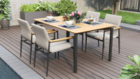 Designed for both style and practicality, the Radiance Dining Table comfortably seats up to three people, making it an excellent choice for small outdoor spaces. Crafted from solid teak and powder-coated aluminum, it offers lasting durability and weather resistance. Its compact, space-efficient design ensures effortless outdoor dining without compromising on elegance.