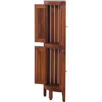 Make the most of every inch with the Kai OptiAREA Two-Level Corner Teak Tower Floor Cabinet—our space-saving teak solution designed for compact corners. Measuring just 9" x 9" x 40.5", this slender unit tucks neatly into shower or bathroom corners while offering smart enclosed storage. Two internal shelves help organize smaller essentials, while slatted teak doors provide airflow and durability in damp environments. Built from solid teak and delivered fully assembled, the Kai OptiAREA Two-Level Corner Teak Tower Floor Cabinet combines minimal footprint with maximum function for streamlined, spa-inspired spaces.