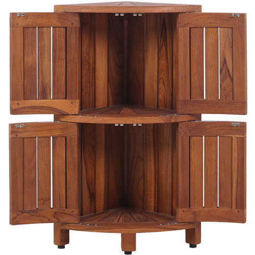 Kai Small Two-Tier Corner Teak Bath Shelf with Doors – Fully Assembled For Your Convenience