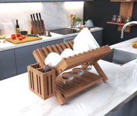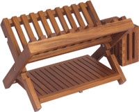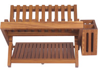 Keep your kitchen looking spotless and well put-together, even while you do the dishes! The Manada™ Teak Dish Rack from Aqua Teak’s collection of kitchen and bathroom teak furniture is perfect for holding flatware, silverware, and cups that need to dry before being put away.