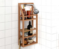 With multiple compartments and shelves, the Moa Teak Shower Organizer offers a practical solution for keeping your shower essentials organized and easily accessible. The finely sanded surface showcases the natural grain patterns of the teak wood, adding to the overall visual appeal.