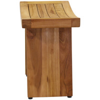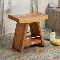 From our contemporary Asia® collection, this teak shower bench comes complete with stainless steel accents. Perfect as a teak shower seat, its diminutive size, at 18", also makes it the perfect choice for an indoor or outdoor accent bench. The added stainless steel accents of this teak bench also makes it ideal for use in locker rooms, spas, or gyms to add a touch of lasting class to your spa decor. Our teak shower benches are all naturally water resistant and extremely durable, handcrafted from high quality, eco-friendly teak wood. With rubber padded feet, the teak bath stool remains safe and stable in any location. We offer a 30-day, no-hassle satisfaction guarantee and 5-year warranty on all of our products.