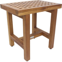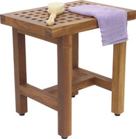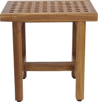 Don’t let small spaces go to waste. This teak shower bench is the perfect size to turn a corner into a touch of luxury. The simple design of this teak bench makes it fantastic for spaces that just need that extra something. The grate design keeps water from pooling, and the teak itself is impervious to water. You will love the rich, golden-brown color of the teak as well as its silky-smooth texture. This bench may be on the small side, but it has been constructed with sturdiness in mind. Its rubber feet keep it stable and prevent sliding. This is a teak bench that won’t rock or break down. Invest in yours today and enjoy our 30-day customer satisfaction guarantee!
