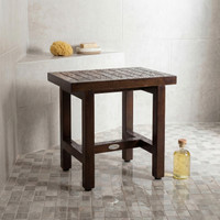 Product Dimensions: 18" x 12" x 18" Product Weight: 13 LBS Sometimes, simplicity is the most luxurious touch of all. This teak shower bench will fit into a compact space and offer a place to sit or to set your things. Most of the furniture you’ll find in a shower will be plastic or metal, which makes this teak wood bench an incredible touch. Best of all, you don’t have to worry about water ruining the bench. Our teak shower benches are crafted out of authentic teak, which means they feature water-repelling qualities and gorgeous color. AquaTeak proudly offers a 30-day satisfaction guarantee and a five year warranty. Invest today! (Some assembly required)
