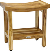 Modern, Natural Teak That’s Eco-Conscious! Embrace teak products that you can trust and know their traceability! AquaTeak is committed to supporting the environment with sustainably sourced teak products and furniture, never leaving you guessing. FSC, Terrapass, and SVLK certified Chemical- and pesticide-free Ethically sourced from teak farms in Indonesia This teak shower bench blends the best light and dark variations of teak, for a raw, natural look that is great for all design styles. Not only does it look amazing, but it’s comfortable too! With a curved seat and a lower shelf where you can store all of your favorite products, everything is within reach while you're bathing. Curved seat Beautiful, natural colors throughout Extra storage shelf on the bottom Product Dimensions: 18" x 12" x 18" Product Weight: 14.6 LBS