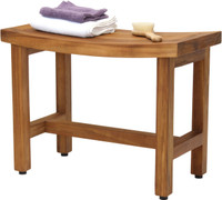 Sit down and relax in your shower with an incredible piece of teak furniture. This 24 inch shower bench is big enough to hold bottles of shampoo as well as you when it’s time to breathe for a while. It’s crafted from completely authentic teak cultivated in Indonesia and designed to stand steady. Its tough rubber feet and smooth surface make it the perfect addition to any shower. A teak shower bench is a worthwhile investment, because its surface is impervious to moisture and wear and tear. AquaTeak® proudly offers a 30-day satisfaction guarantee and a five year warranty.