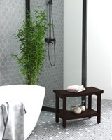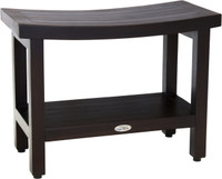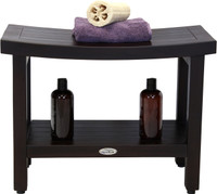 Product Dimensions: 24" x 12" x 18" Product Weight: 15 lbs The sultry Sumba Teak Shower Bench...now available in a rich, deep mocha stain! This OptiArea space saving teak shower bench is beautiful enough to be used anywhere indoors or outdoors, as a decorative end table, teak shower stool, and more. The compact size of the teak shower seat and the included storage shelf makes it extraordinarily versatile and functional. Our sustainably harvested, environmentally friendly teak wood is naturally water resistant and extremely durable, making this teak bench perfect for the shower, pool deck, or patio. We are so confident that you will love your teak shower bench that we offer a 30 day satisfaction guarantee and 5 year warranty! (Some assembly required)