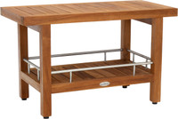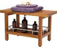 This teak bath bench has amazing versatility and is elegant enough to be used indoors or outdoors. It is naturally water resistant, making it perfect for use as a teak shower stool, coffee table, or bath seat. This teak shower bench also includes beautiful stainless steel accents and hardware, rubber padded feet for safety and stability, and an additional shelf for added storage space. Made exclusively with sustainably harvested teak wood, we are so confident that you will love this teak shower seat that we offer a 30 day satisfaction guarantee and 5 year warranty on all of our products.
