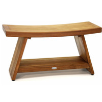 This teak shower bench, from our popular Asia® collection, is perfect as an addition to any shower space, but its extended length also makes it easy to use as an accent bench or stool, either indoors or out The extended size of this teak bath stool provides ample room for seating or storage, and includes a convenient shelf for extra convenience. Exclusively built using sustainably-harvested wood, our premier teak shower benches will add a touch of simple Asian elegance to your home. We are so confident that you will love this teak shower seat that we offer a 30-day satisfaction guarantee and 5 year warranty on all of our products!