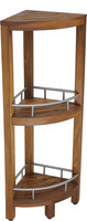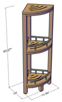 A large solid teak and stainless 3 shelf corner unit ideal for the patio, bathroom, shower, deck, patio, or pool deck. Each shelf is almost 12.25” x 12.25” leaving plenty of room for soap, toiletries, swim toys, goggles, razors, or anything else. It is naturally water resistant making it ideal for environments with a heavy moisture exposure such as showers, bathrooms, and pools. Teak wood has a life expectancy of 75 years if left untreated due to its natural rubber content that naturally resists moisture. No other wood compares to Teak when it comes to durability, elegance, stability and low maintenance. We only use wood from plantations, farm grown with no direct impact on the natural environment. We are a small family owned and managed company. We take pride in each of our products, and stand behind them with a no questions asked 30 day satisfaction policy. For over 10 years we have sourced products from small workshops in Indonesia which are also typically family run operations. They consider themselves craftsmen, and put pride and joy into each and every product. The quality of our products are unsurpassed compared to other teak products which are produced in large factories in other parts of Asia, and are mass produced in large volumes. Use: Storage or display indoor or outdoor. Store towels or items on the 3 shelves. Materials: 100% Indonesia Plantation teak wood. (Some Assembly Required) Product Dimensions: 12.25" x 12.25" x 40.75" Product Weight: 17 LBS