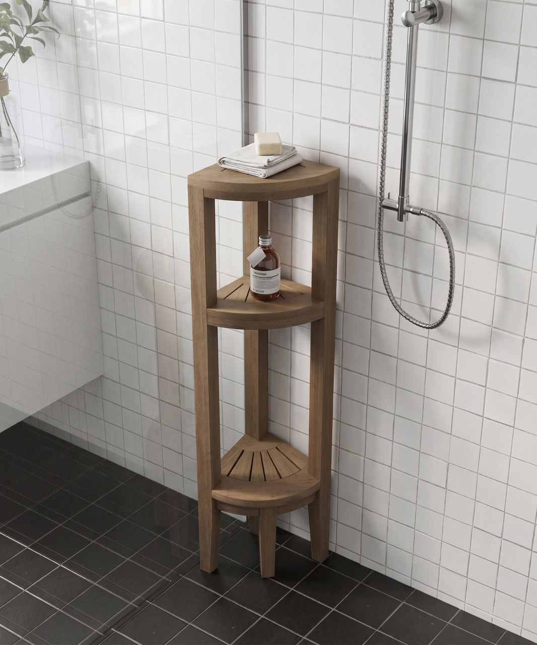 Teak bathroom furniture for the shower! Experience comfort, style, and safety the next time you shower with our teak shower footrest! If you have a beautiful walk-in shower but no built in places to help you shave and wash, not only is it a bit uncomfortable but it can also become a safety issue. But, not with our teak shower footrest! Sturdy Durable Optimally fits in any corner Solid teak Improves shower safety and comfort Some Assembly Required Elevate your shower experience with a teak footrest! Not only is it crafted from sturdy and solid teak wood, but it fits nicely into any corner for a low-profile aesthetic. If you’re ready to better prevent slips and uncomfortable stretching when you shave, shop our teak footrest today! Product Dimensions: 9" x 9" x 13" Product Weight: 3.5 LBS