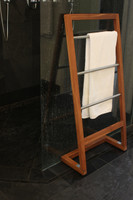 Teak And Stainless Steel For Your Bathroom This beautiful OptiAREA™ space-saving teak towel stand can also be used as a convenient pool rack, and is versatile and durable enough to be used either indoors or outdoors. Our teak shower stand is a perfect way to add extra storage space anywhere in your home or garden. Versatile Water- and rust-resistant Hangs three towels The compact, angled design of the teak towel rack is compact to help you save space while remaining functional. Handcrafted using sustainably harvested wood, this teak towel stand is naturally water-resistant and features lovely stainless steel accents. AquaTeak® offers a 30-day satisfaction guarantee and a five-year warranty on all products. (Some assembly required) Stainless steel towel bars Efficiently organizes Saves space Product Dimensions: 21.5" x 9.5" x 44" Product Weight: 6.5 LBS