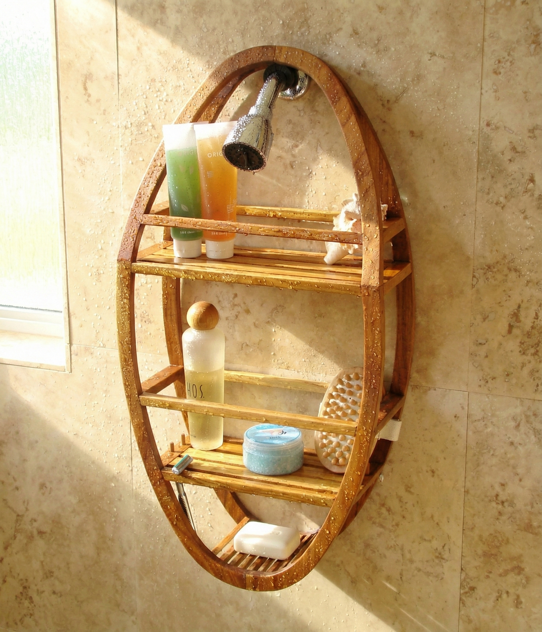 You'll never find a more durable and visually appealing teak shower organizer. This AquaTeak® shower stand hangs on your shower head or hook and is designed to hold all of your accessories. The teak shower caddy is a convenient size, allowing plenty of room for bath products while still comfortably fitting in almost any shower. Additionally, teak wood is naturally water resistant and will not corrode or pit. Handcrafted and made to last, we are so confident that you will love your teak shower organizer that we offer a 30 day satisfaction guarantee and 5 year warranty on all of our products!