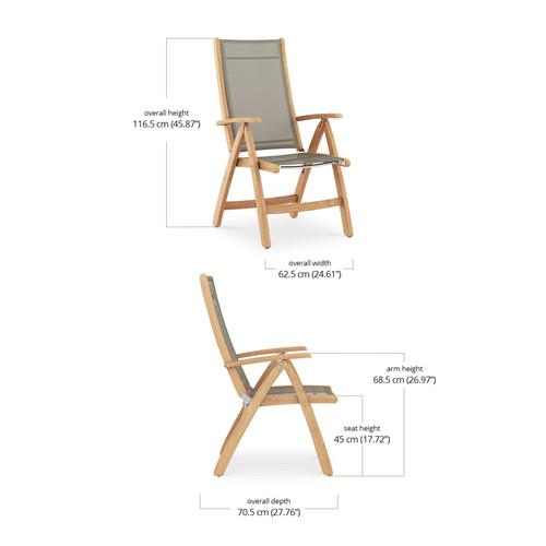 This teak outdoor chair was built to last — with a robust teak frame, it will endure all the weather that comes for it!