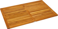 The beautiful Spa™ Kitchen Anti-Fatigue Teak Floor Mat from Aqua Teak will add a gorgeous touch to any kitchen, bathroom or outdoor pool area. Perfect to use either indoors or outdoors, this mat has anti-skid, slip-resistant rubber grips for added stability. Features Offers functional luxury Horizontal slatted lines of wood Handcrafted from eco-friendly, sustainably harvested wood Water-proof, long-lasting durability Our Aqua Teak staff is so confident you will love this piece of bathroom teak furniture that we offer a 30 day satisfaction guarantee and five year warranty on all of our products. Purchase yours today! Specs Product Dimensions: 36" x 24" x 1" Product Weight: 13 LBS