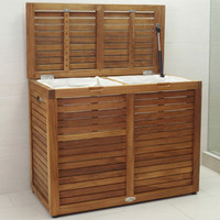 Organize And Store With Stylish Teak Furniture. Don’t forgo home style and design even if it is just in your laundry room or storage area! This multi-purpose teak laundry bin or storage hamper brings a classic aesthetic to often forgot about areas! AquaTeak creates furniture that makes any room look good, and with this storage bin or laundry hamper, you won’t have to worry about closing it off. Let everyone see how chic teak can be — chances are, they won’t even know what it’s used for! Product Ships with Two Standard Fabric Medium Size Hamper Bags. Product Dimensions: 28" x 14" x 21.5", Product Weight: 35 LBS