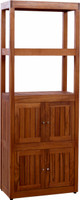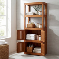Bring natural elegance and lasting functionality to your bathroom with the Sula Four-Level Teak Tower Floor Cabinet with Display Shelving. Expertly crafted from premium, sustainably harvested teak, this tall storage solution features two open shelves for display or easy-access items, and two sets of double-door cabinets with slatted fronts to promote airflow and reduce moisture buildup. Whether storing towels, toiletries, or bath essentials, its space-efficient vertical design and rich wood grain make it a timeless addition to any spa-like setting. Delivered fully assembled for your convenience.