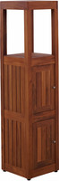 Tall, compact, and beautifully crafted, the Sula Five-Tier Square Stand with Bottom Doors and Open Top brings vertical storage to life with timeless teak construction. Made from sustainably sourced, water-resistant teak wood, this space-saving tower features three open upper tiers ideal for displaying towels, baskets, or décor, along with two slatted-door cabinets below for concealed storage. Its sleek square design fits seamlessly into small bathrooms or tight corners, offering both style and function in one fully assembled piece.