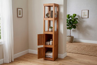 Bring vertical storage and timeless style to compact spaces with the Sula OptiAREA Four-Level Teak Tower Floor Cabinet with Display Shelving. Expertly crafted from solid, sustainably sourced teak, this tall, slender tower features two open upper shelves for display or easy-access items, and a pair of enclosed lower cabinets with slatted doors to discreetly store bath essentials. Naturally water-resistant and incredibly durable, teak is ideal for humid environments like bathrooms or spas. Its space-saving footprint and elegant design make this fully assembled stand a versatile and beautiful storage solution.