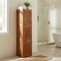 Sula Three-Level Teak Tower Floor Cabinet – Fully Assembled For Your Convenience