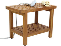 We're very happy with our 24" Teak Shower Bench. It's not only lovely to look at, but comfortable. And we like having the bottom shelf for storing shower products. Having this and the teak mat really upgraded the entire look of our shower. We highly recommend your products and service.