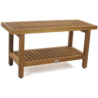 This teak bench expands beyond a traditional style with a grate-like pattern that fuses function and aesthetics! Not only is it chic, but the pattern helps whisk water away!