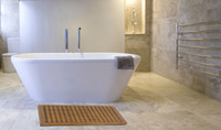 Complete the spa-like feel to any room, both indoor and out, with Aqua Teak's teak floor mat. The Grate design of this shower mat is constructed of the world's most water-resistant wood, ensuring your safety and stability in the wettest environments. At just an inch thick, our floor mat makes the transition from bath to mat an easy one. But at almost 30" in length and 20" wide, this teak mat is large enough to protect the floor in even large showers. Buy any of Aqua Teak's teak shower accessories and mats with confidence, as all of our teak furniture products carry a 30-day satisfaction guarantee and their quality backed by a five-year warranty.